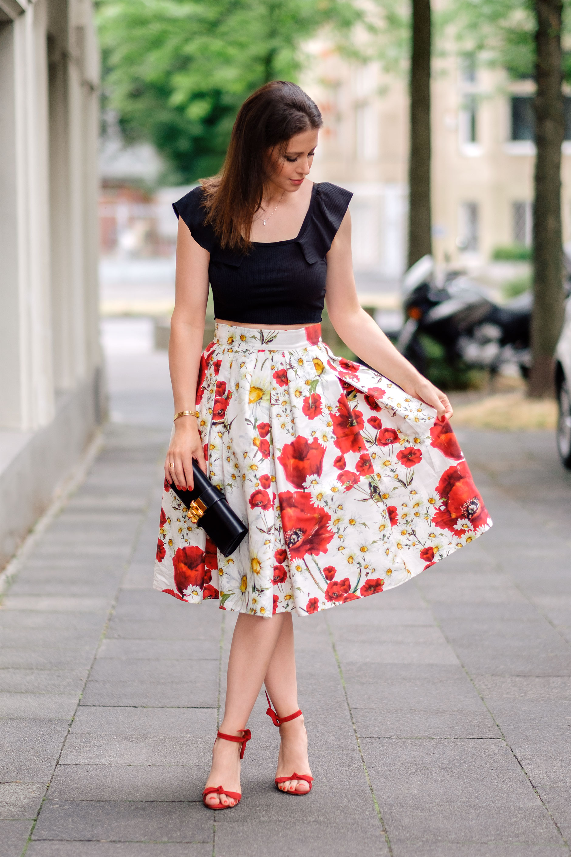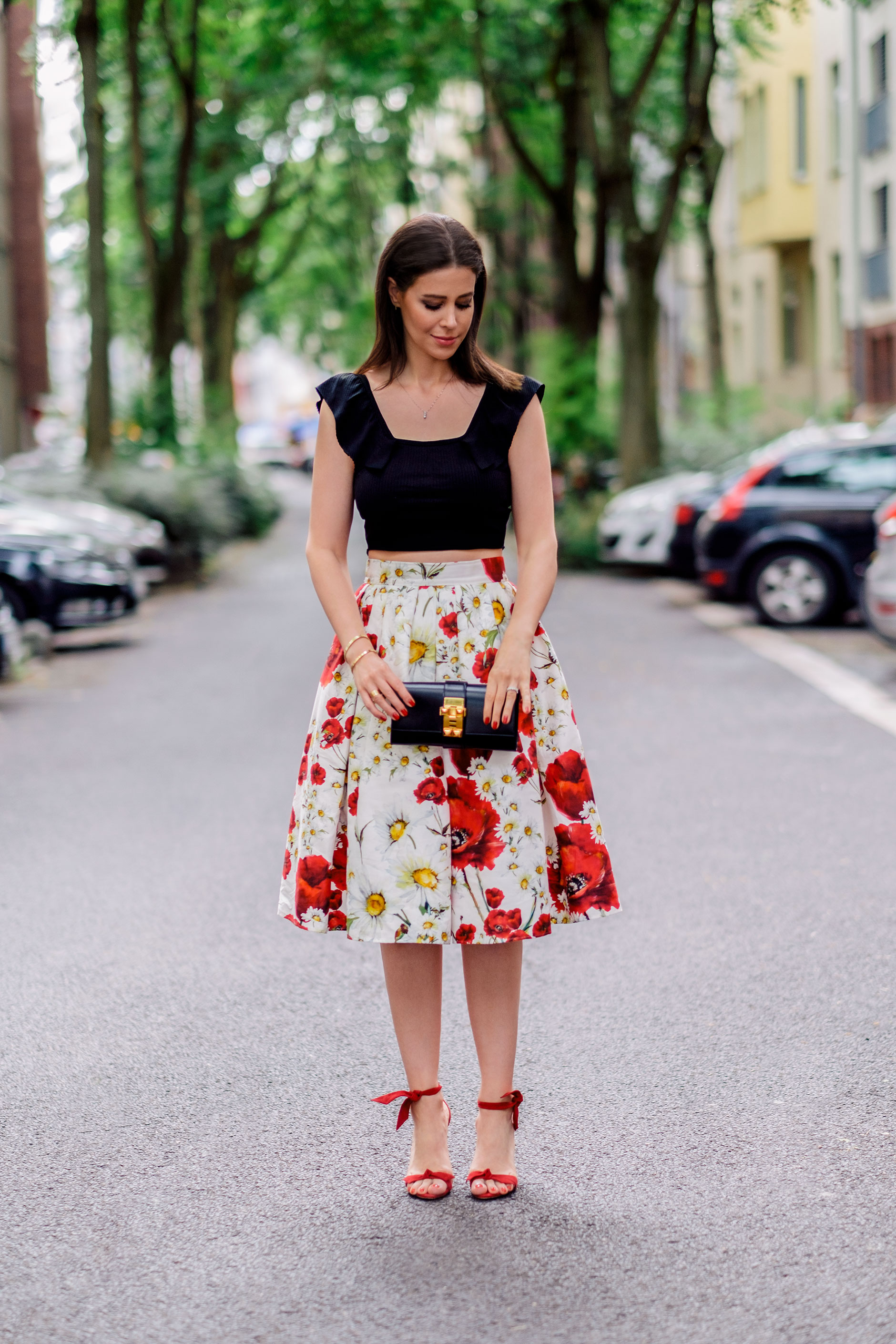 Hier trage ich meine neuen Lieblingsschuhe in Kombination mit einem Rock von Dolce & Gabbana (leider aus der letzten Saison und nicht mehr erhältlich) und einem Crop Top von Zara.