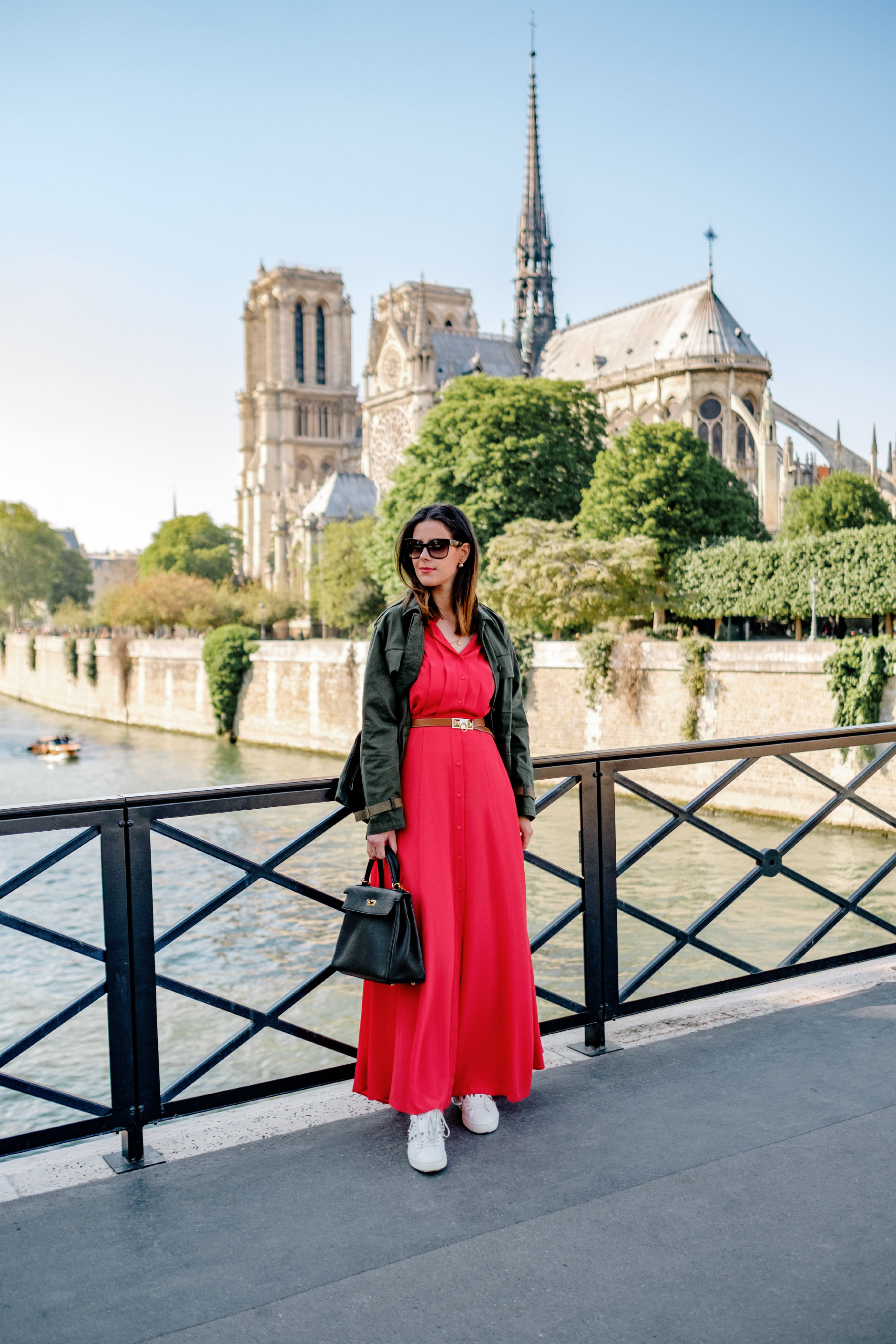 Auf dem Weg zur Diptyque Boutique in Saint Germain haben wir einen kleinen Spaziergang an der Seine gemacht, und in der Nähe von Notre Dame sind diese Fotos entstanden. Dank des Aprilwetters ist es zwar nicht wirklich warm gewesen, aber in dem langen Maxikleid und mit einem Parka ließ es sich dann doch ganz gut aushalten.