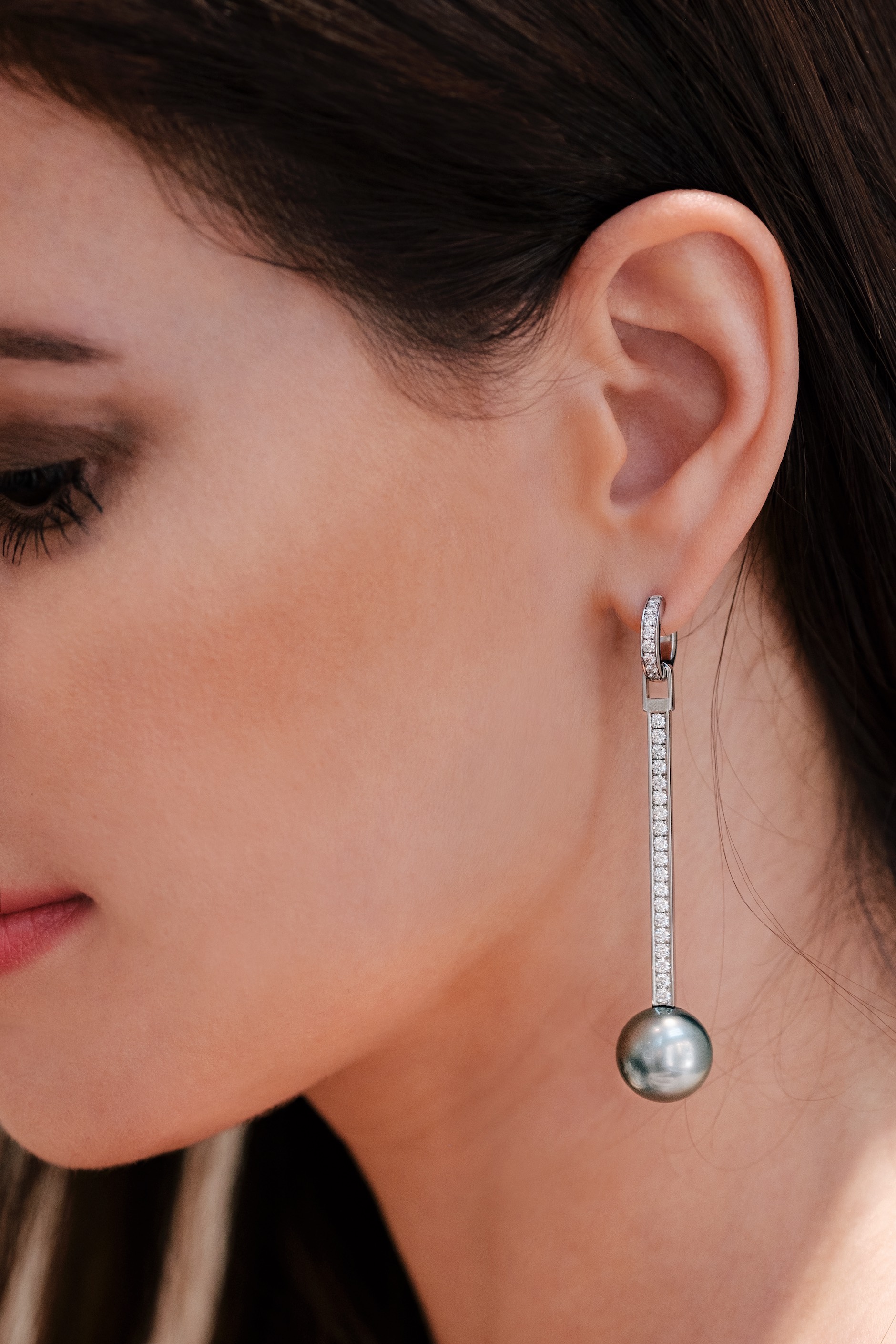 ⁃Ohrringe: Tahiti Perle, Platin, 38 Brillianten, 1,43 Karat, Platin, € 9.800