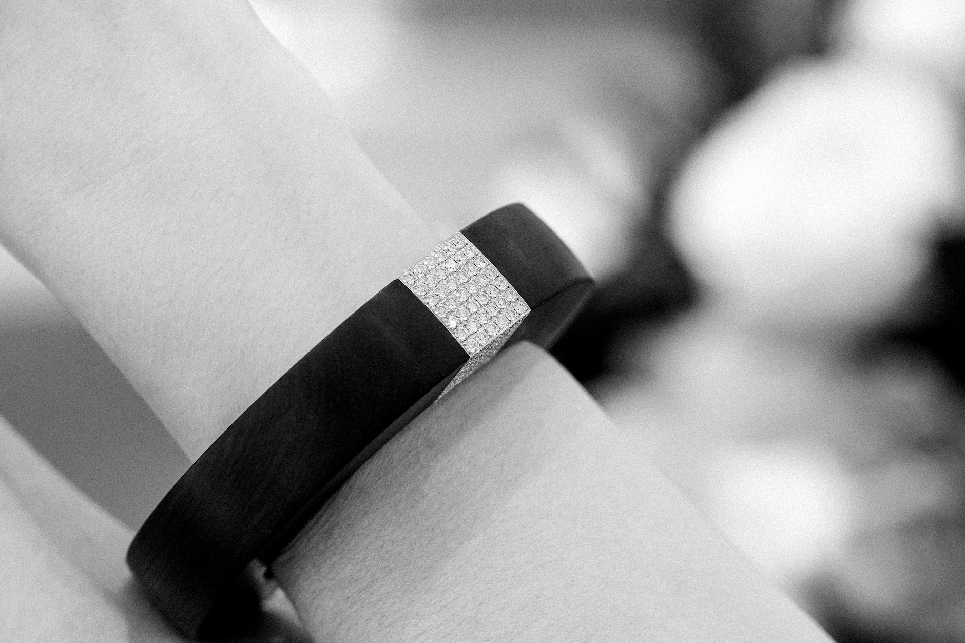 ⁃Armreif: Grenadillholz, Platin, 114 Brillianten, 4,68 Karat, € 34.500